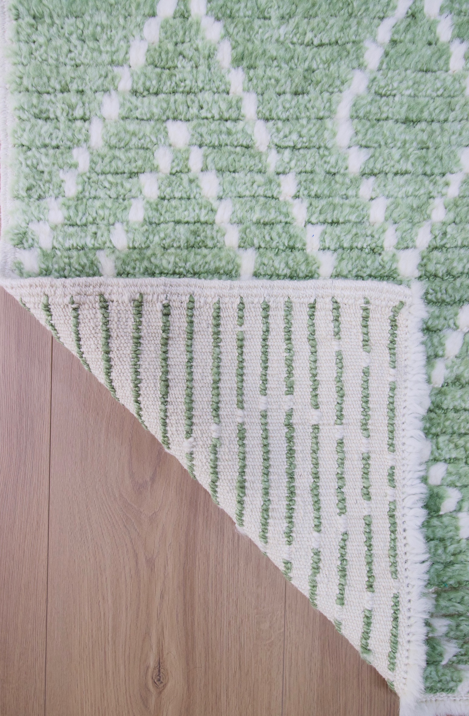 This Rug is entirely Handwoven with 100% Wool.
